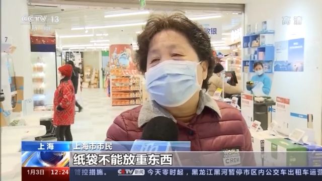 上海市居民:纸袋不能放重东西,放了重东西要穿掉的呀,水产品不是要穿掉了吗。